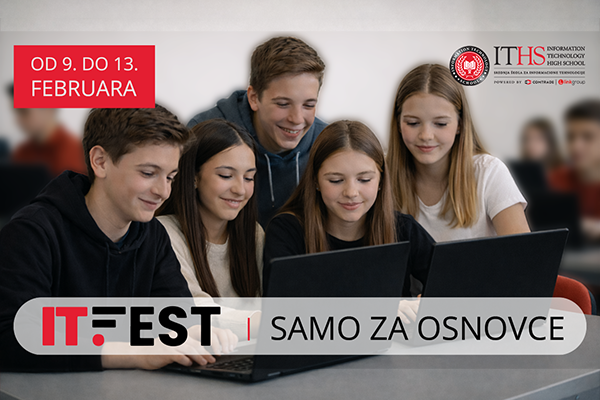 Od 9. do 13. februara 2026. godine, osnovci sedmog i osmog razreda imaće priliku da učestvuju u besplatnoj Zimskoj školi programiranja, elektronike i multimedije – IT FEST JUNIOR 2026, koju organizuje Srednja škola za informacione tehnologije – ITHS.